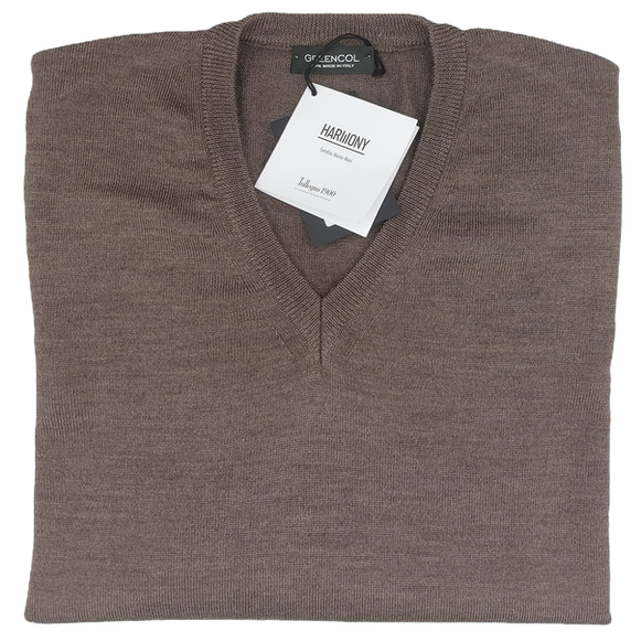 Maglione Lana Giro Collo a V col Castoro